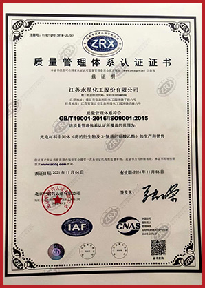 江蘇永星化工股份有限公司成立于2010年,位于江蘇省宿遷市宿豫區生態(tài)化工科技產業園揚子路6號,注冊資本3215.463萬元,占地105畝,分為南北兩個廠區。